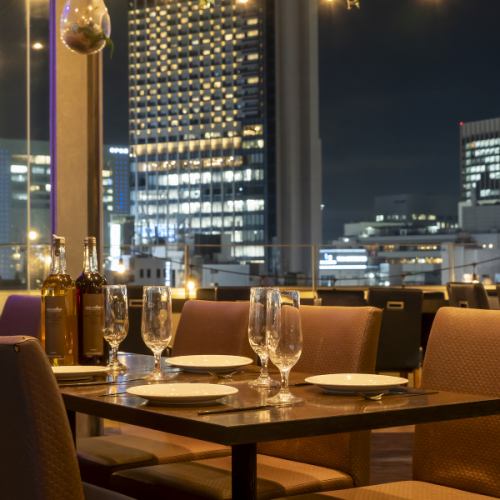 夜景を眺めるテラス席は、季節問わず人気のお席。テラス貸切などもご相談下さい。